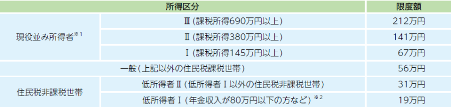 ※2…介護サービス利用者が複数いる世帯の場合、介護支給分については低所得者IIの限度額が適用されます。
