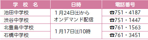 場所:各学校(オンデマンド配信の場合を除く)