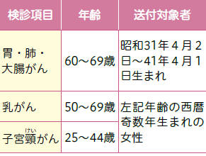 がんの種類ごとに特になりやすい年齢の方にがん検診受診案内はがきを送付します(受診券ではありません)。