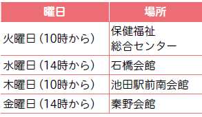 日時:10月22日(水)~3月13日(金)の下表のとおり(各全18回)