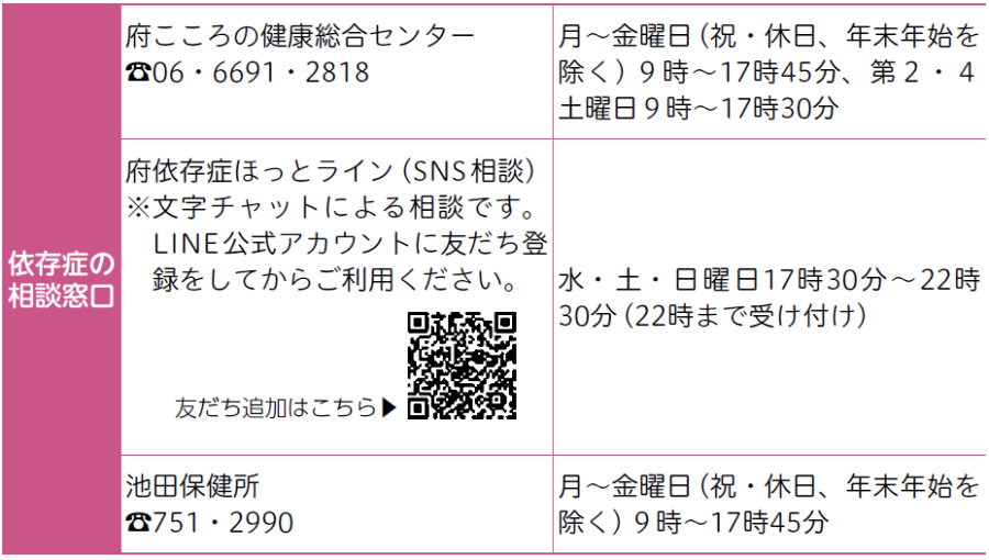 府内の依存症相談窓口ホームページは右記二次元コード(本紙参照)から