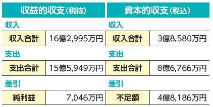 収益的収支については、収入は16億2,995万円、支出は15億5,949万円となり、差し引き7,046万円の黒字となりました。