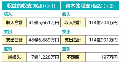 また、資本的収支については、企業債借入などの収入114億704万円、新病院建設費用などの支出114億901万円となり、197万円の不足となりました。