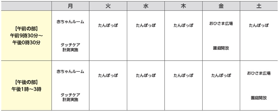 1歳未満児と保護者、妊婦とその家族対象。1歳以上の子どもの利用はできません。