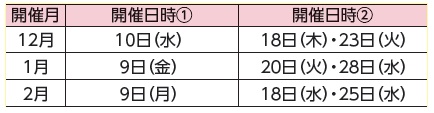 ※開催日(1)は午前10時〜、(2)は午後1時30分~