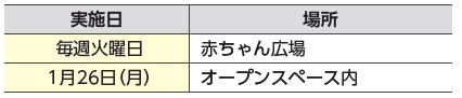 ※赤ちゃんルーム…26日(月)午前、2月2日(月)午前は休み。
