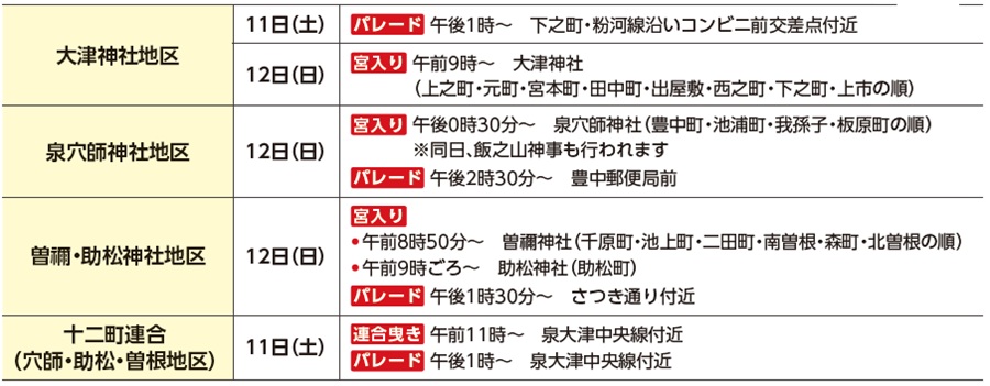 ※5日(日)の試験曳きについては、各町都合により午前曳行の可能性があります。