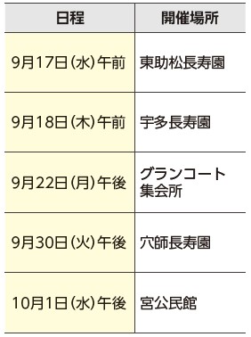 申込:9月5日(金)から直接または電話(複数日選択可)