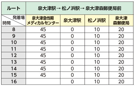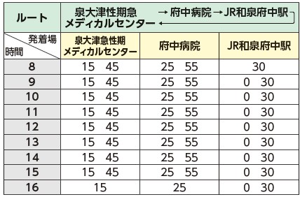 ●泉大津急性期メディカルセンター 無料送迎バス発車予定時刻表