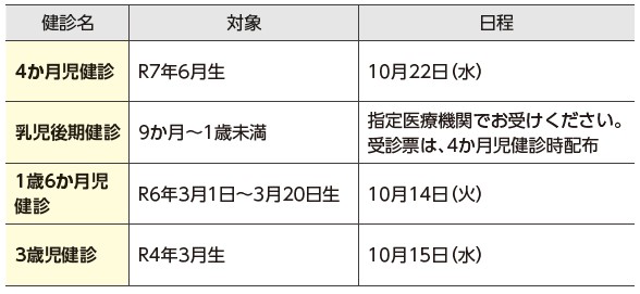 また、乳幼児健診・歯科健診については、個別通知を郵送します。