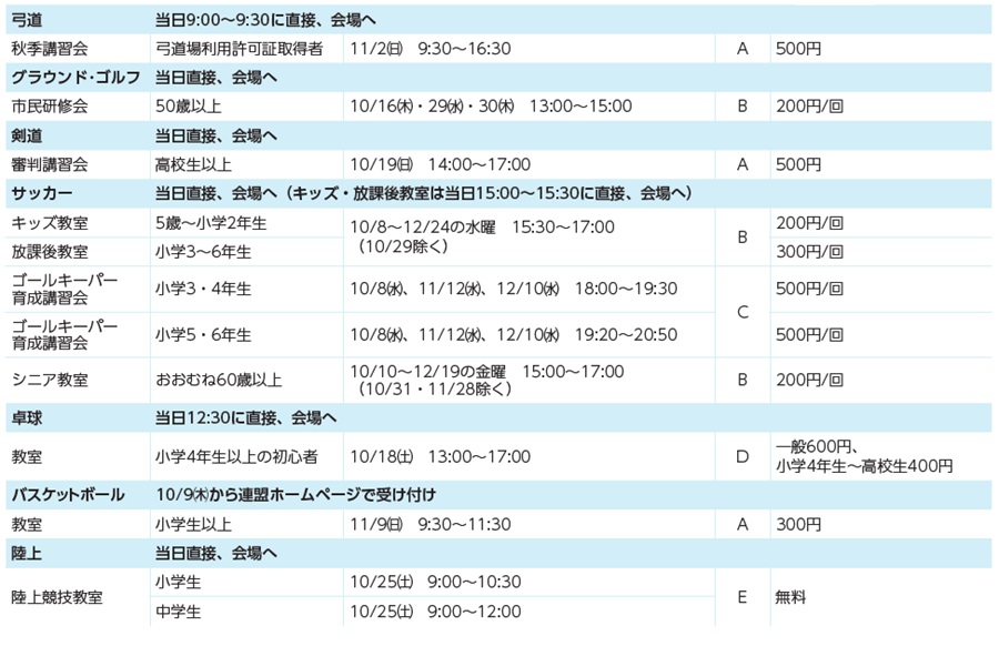 各施設に個人利用日あり。大人300円、小中学生150円(陸上競技場は大人200円、小中学生100円)