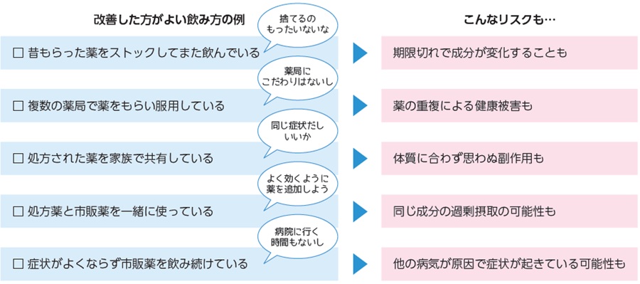 薬は病気の治療や予防のために私たちの生活に欠かせないものです。しかし、どんな薬でも誤った飲み方や薬の重複などがあれば思わぬ副作用や健康被害につながります。