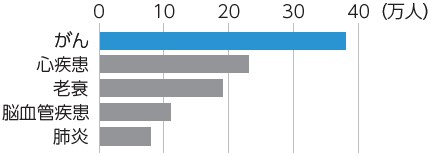 令和5年にがんで亡くなった人は約38万人。全死亡者数の約24%を占めています。がんは、年齢や性別でかかりやすい種類は異なりますが、誰にでも起こり得る身近な病気です。