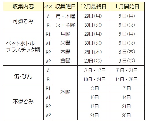 くらし 年末年始ごみの収集日 3/51 前の記事 次の記事 発行日 : 2025年12月05日 自治体名 : 大阪府貝塚市 広報紙名 : 広報かいづか 令和7年12月号 収集時間が通常と異なり前後する可能性がありますが、ごみは必ず朝8時45分までに出してください。 問合せ先:廃棄物対策課 【電話】072-433-7009 Tweet シェアする 年末年始 休みのお知らせ 岸和田市貝塚市クリーンセンターへの年末年始のごみの直接搬入はお早めに!