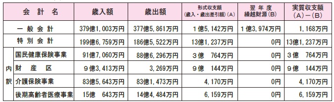 令和6年度決算は、一般会計の形式収支(歳入歳出差引額)が1億5,142万円、実質収支(形式収支から翌年度へ繰越すべき財源を控除した額)が1,168万円となり、昨年度に引き続き黒字決算となるなど、特別会計(4会計)も含めすべて黒字決算になりました。
