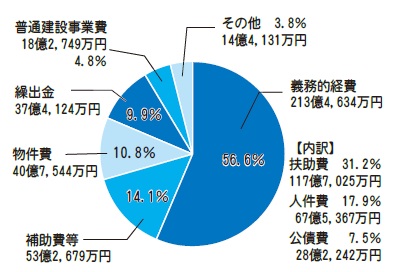 一方、主な減少要因は、岸和田市貝塚市斎場整備事業の費用縮小により衛生費で約9億円、JR東貝塚駅前広場アクセス道路等整備事業の費用縮小により土木費で約4億円があげられます。