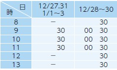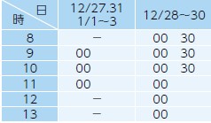 ・12/28(日)~1/3(土)7:00~17:00