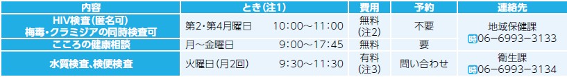 場所:守口・門真・寝屋川・大東・四條畷市の各委託医療機関