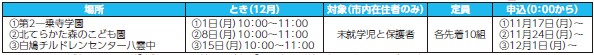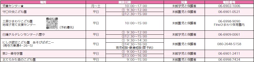 備考:遊びの内容・時間などは各施設へ問い合わせください。