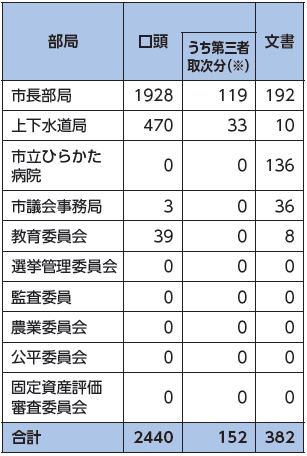 ※取次者が本市に要望者の意見を聞くように要望したものおよび取次者が本市に要望者の意見などを伝達したもの。