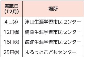 申込:12月9日から市ホームページの専用フォームで同センターへ。先着各7人。