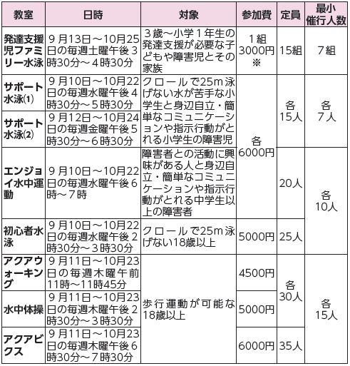 申込:8月4日午前11時から電話で総合スポーツセンターへ。窓口可。先着30人。