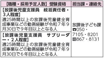 申込:写真付きの履歴書を持って輝きプラザきらら4階放課後子ども課へ。登録時に面接あり。