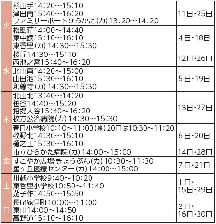 (※)20日の春日小学校は避難訓練のため10:30~11:20となります