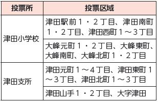 日時など:11月12日(水)~15日(土)午前8時30分~午後8時、津田支所(通常の選挙と異なり期日前投票所は1カ所のみ)。