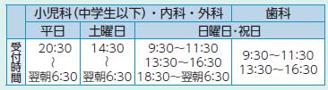 ※上表の時間帯や診療科目以外の相談または、突然の病気やケガで救急車を呼ぶべきか悩んだ場合等は、救急安心センターおおさか(【電話】#7119または【電話】06・6582・7119)または府小児救急電話相談(【電話】#8000または【電話】06・6765・3650、毎日19:00~翌朝8:00)へお電話ください。