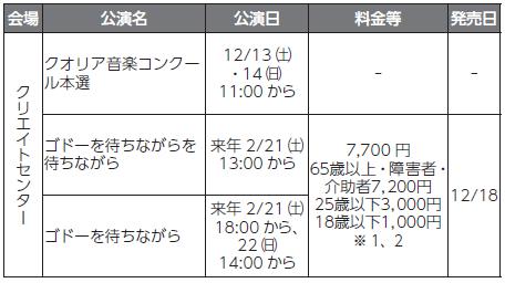 チケット販売:WEB申込、電話、直接クリエイトセンターチケットカウンターまたは同財団(予約開始初日は窓口販売はしていません)