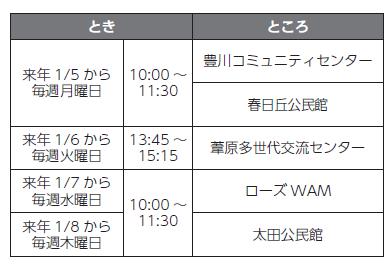 日時:3期…来年1~3月の土曜日(祝日休み)