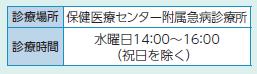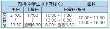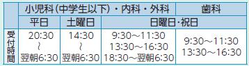 ※上表の時間帯や診療科目以外の相談または、突然の病気やケガで救急車を呼ぶべきか悩んだ場合等は、救急安心センターおおさか(【電話】#7119または【電話】06・6582・7119)または府小児救急電話相談(【電話】#8000または【電話】06・6765・3650、毎日19:00~翌朝8:00)へお電話ください。