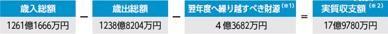 (※2)実質収支額…歳入総額から歳出総額を差し引いて、さらに翌年度へ繰り越すべき財源を差し引いたもので、市の実質的な収支の状況を示しています。