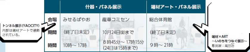 万博リボーンチャレンジで展示された什器やアート作品が八尾市内の会場に登場します。ぜひご覧ください。