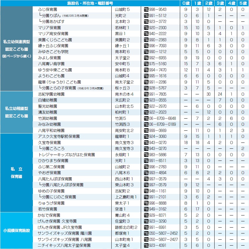 ※他市町村の認定こども園などに入園希望の人は、各市町村へお問合せください。