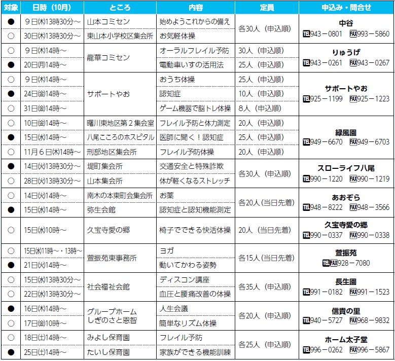 講座 介護予防の教室 23/44 前の記事 次の記事 発行日 : 2025年09月20日 自治体名 : 大阪府八尾市 広報紙名 : やお市政だより 令和7年10月号 申込み:10月1日〜 ●印は家族介護教室 ID:1019924 対象:市内在住の介護者 ○印は介護予防教室 ID:1019920 対象:市内在住の65歳以上 Tweet シェアする 〔Notice from the Yao city〕イベント・講座(4) 〔Notice from the Yao city〕イベント・講座(5)