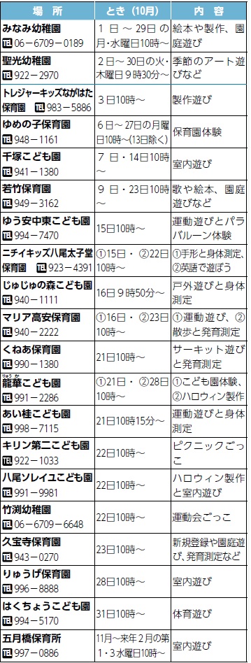 子育て 〔Childcare Information〕認定こども園・保育園の催し 33/44 前の記事 次の記事 発行日 : 2025年09月20日 自治体名 : 大阪府八尾市 広報紙名 : やお市政だより 令和7年10月号 ID:1019818 ※内容や申込方法など詳細は市ホームページをご覧ください。 Tweet シェアする 地域子育て支援センター 元気っ子くらぶ 〔Facility Events〕施設の催し(1)