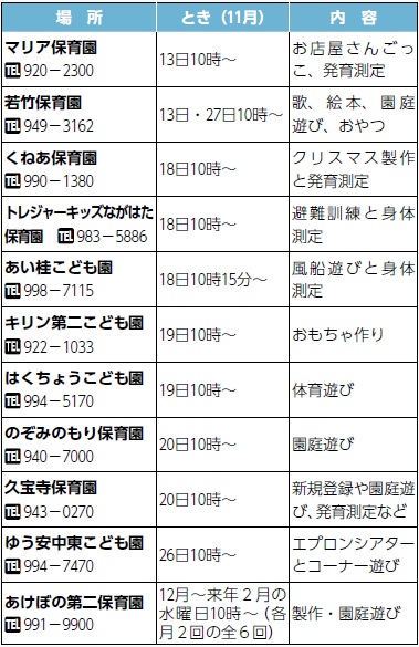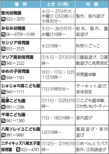 子育て 認定こども園・保育園の催し 40/53 前の記事 次の記事 発行日 : 2025年10月20日 自治体名 : 大阪府八尾市 広報紙名 : やお市政だより 令和7年11月号 ID:1020326 Tweet シェアする 〔Childcare Information〕子育て(2) 地域子育て支援センター 元気っ子くらぶ