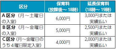 ※延長保育料は申込み時に、月額と実績払い(1回30分以内までの延長につき150円)のいずれかを選択。