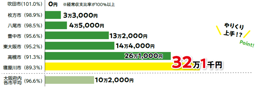 「選ばれるまち」の実現に向けていろいろな取り組みを進めている寝屋川市。今回は市のお金の状況についてお知らせします。市のやりくりってどんな感じなの?将来に向けて貯金してるの?などの疑問にお答えします。