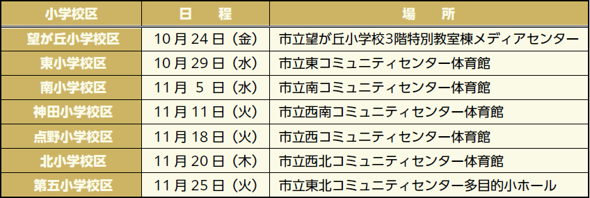 今年度の開催予定:他の小学校区は来年度開催に向けて準備中!