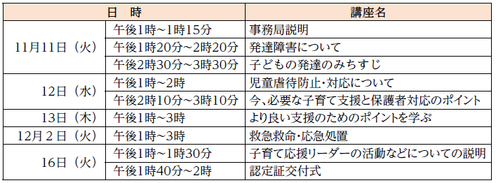 安心して子育てができるようにサポートする、子育て応援リーダーを養成する講習会を行います。