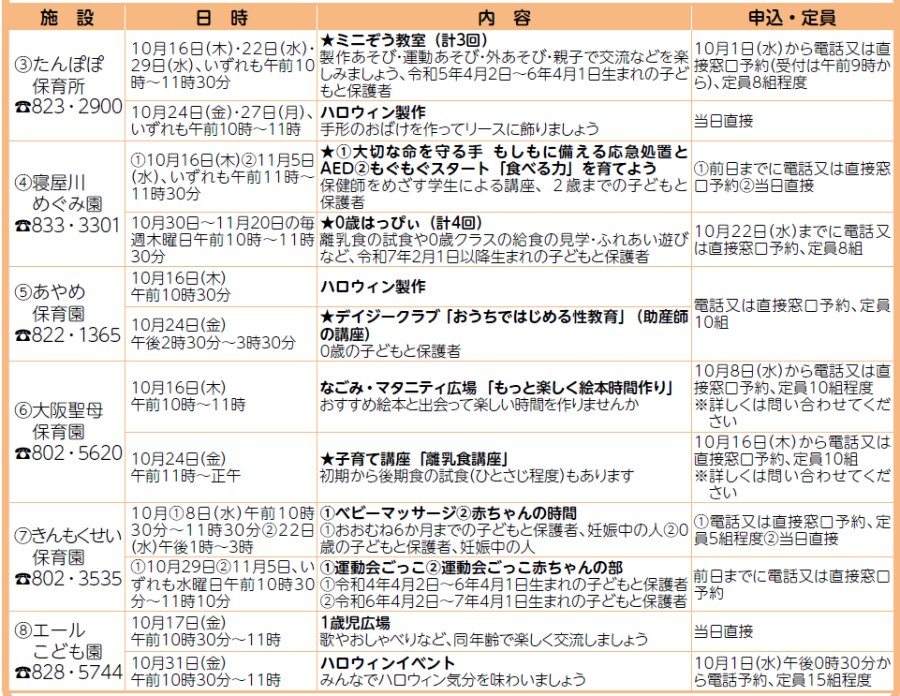 ※参加費などの記載のないものは無料、申込開始日の記載のないものは原則10月1日(水)から申込開始、★は講座です。