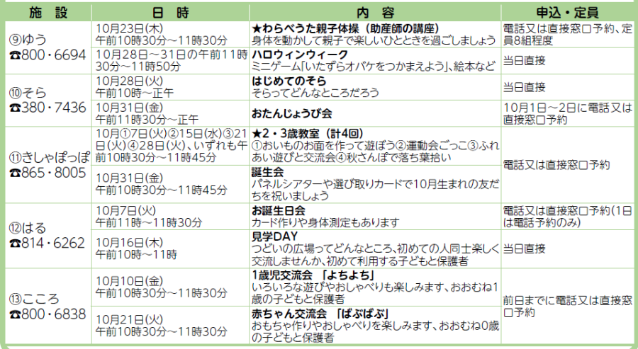 (おおむね0歳~3歳の子どもと保護者対象、所在は右ページ下の(9)~(13))