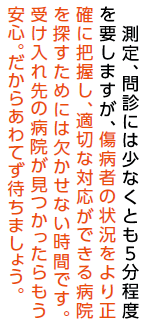 適切な救命処置、的確な病院選定によって、病院側の受け入れも万全、医師による処置もスムーズに!