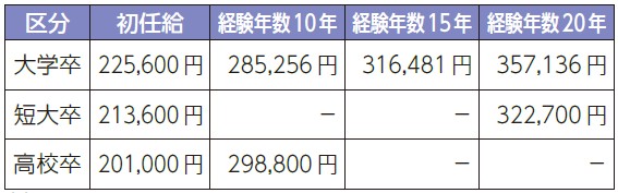 (注)経験年数とは、卒業後直ちに採用され、引き続き勤務している場合は採用後の年数をいうものです。