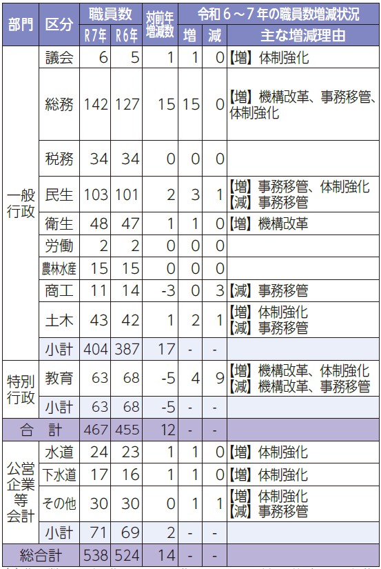 (注)職員数は一般職に属する職員であり、地方公務員の身分を保有する休職者、派遣職員などを含み、臨時または非常勤職員を除いています。