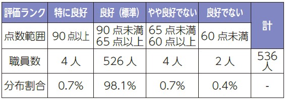 (注1)評価ランクは人事評価の評価結果を100点満点換算したものです。