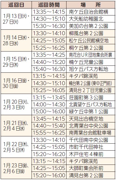 ■自動車文庫巡回表(1月13日~2月6日)